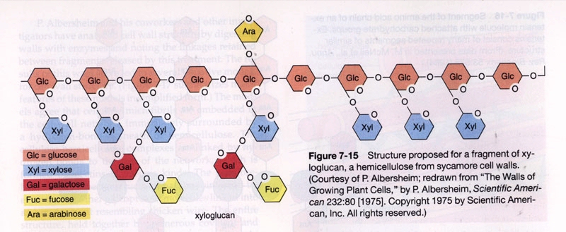 A. Hemicellulose = branched chains of glucose + other sugars