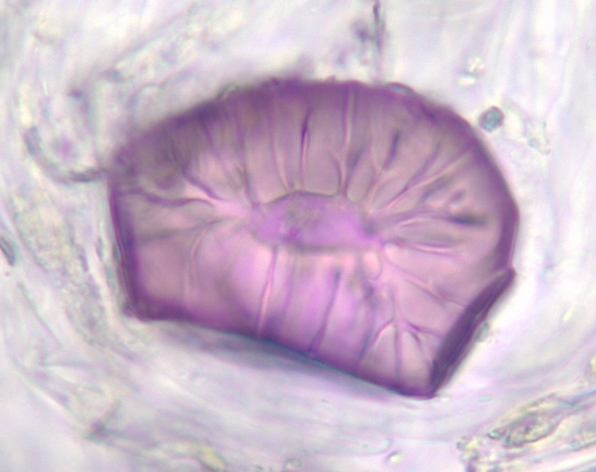 2. Single pit chamber connected with branching pit canal (ramiform) (Pyrus Brachysclereid)