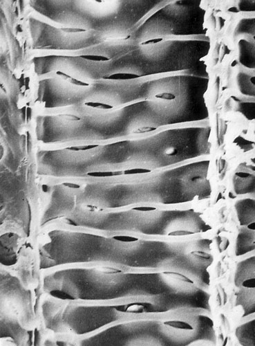 2. Elliptical pit chamber and pit canal (SEM View A) (SEM View B) (Vessels)