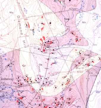 relationship of the veins to the regional geology are available. |